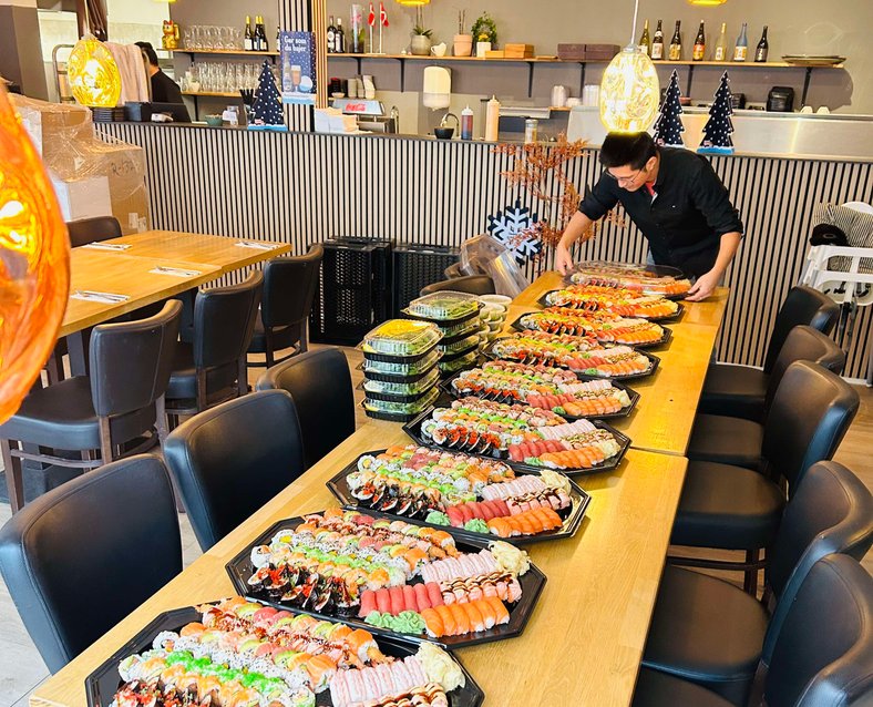 I vores restaurant i Frederikssund kan I nyde vores lækre sushi og forretter ad libitum i hele 2 timer. Bestil enkelt og nemt over en brugervenlig tablet, som I kan bruge til at bestille løbende under hele middagen.
